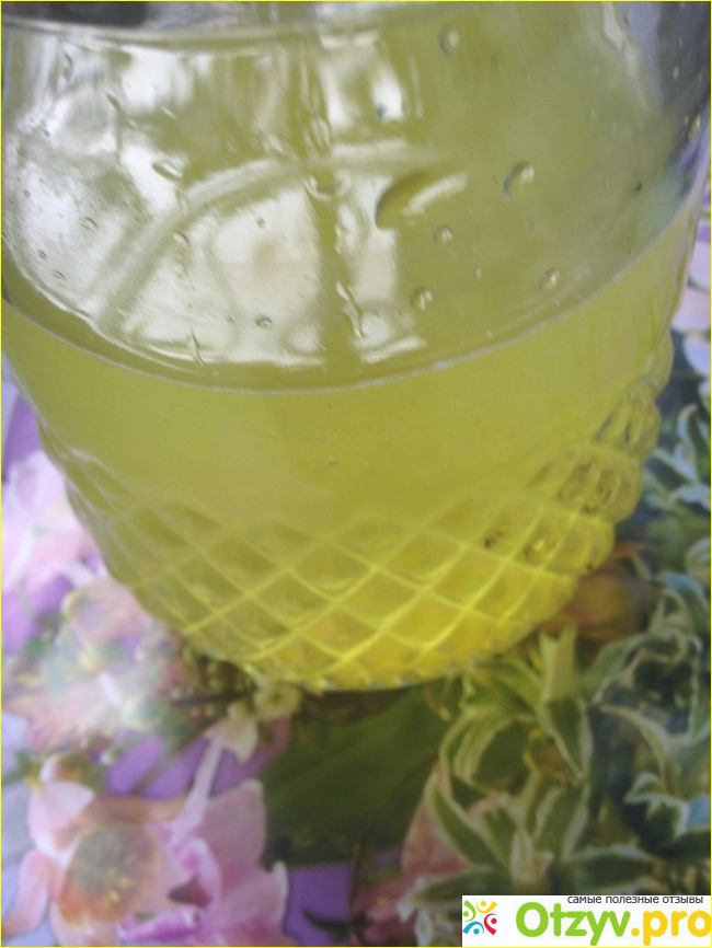 Но я все же напиток сделала. По опыту приготовления желе знаю, что воды надо добавлять не много меньше, чем заявлено производителем, тогда вкус будет насыщенным и желе сладким. В кувшин долила не 1,5 литра волы, а 1,2 охлажденной воды. Хорошенечко размешала до растворения концентрата на дне кувшина. Получился напиток лимонного цвета с отдаленным ароматом груши.