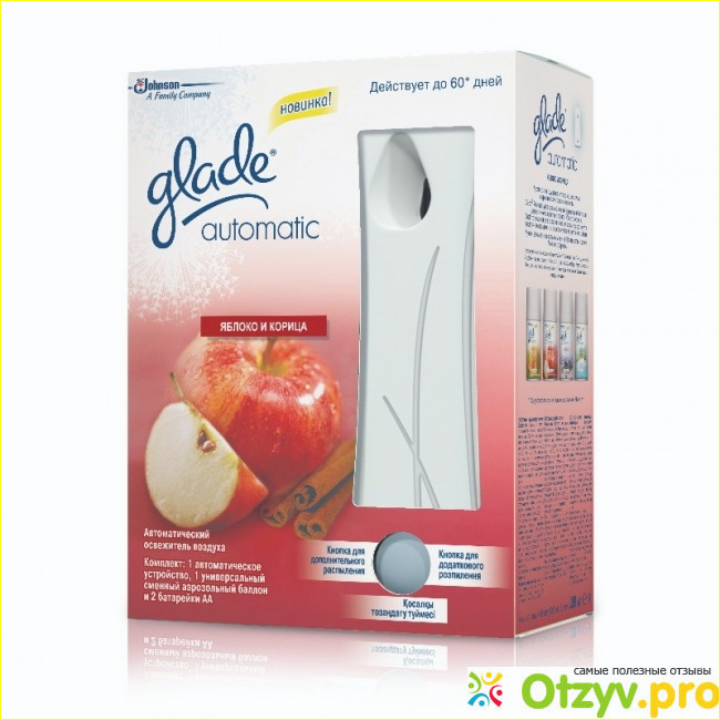 Вот это устройство я и купила, картриджи (сменные аэрозоли) можно менять, а само устройство многоразовое, на батарейке. Установить его я решила не в санузле, а возле входной двери, так как у меня была тогда старенькая больная собачка, ну и сами понимаете, гулять она уже не ходила, а "аромат" ее чувствовался даже с забитым носом. Я решила взять антитабак, так как цитрусовые или цветочные ароматы, на мой взгляд только подчеркивают запахи подобного рода. Вполне себе не плохо маскирует запахи. Пшикает сам, там есть возможность настройки частоты распрыскивания. Собачка, конечно, умерла потом, "аромат" устранился, а аэрозоль остался. Теперь я переместила освежитель в санузел, на смену старому аэрозолю взяла новый с ароматом яблока и корицы. Супер аромат! Я освежителем Глейд довольна, всем рекомендую.
