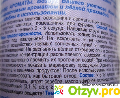 В принципе, устраивает меня и состав освежителя этой марки, есть в наличии ионы серебра и экстракты эфирных масел, как указано на упаковке.