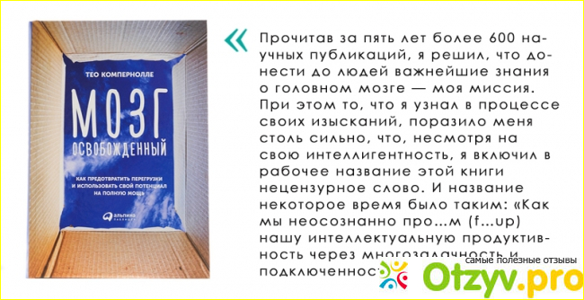 Книгу Тео Компернолле купила не читая отзывы, просто для досуга. "Освободи мозг", название очень актуальное в современном мире, где мы живем в постоянном режиме многозадачности и умственной перегрузки. Считается настоящим достоинством сотрудника или просто делового человека умение решать несколько дел одновременно и быть по максимуму загруженным деятельностью.