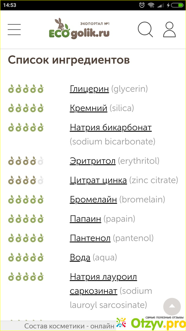 Поскольку я любитель проверять составы, я сразу же заглянула на сайт Экоголик, чтобы выяснить, насколько хорош состав пасты Sclaer. И увиденное могу сказать меня сильно порадовало.