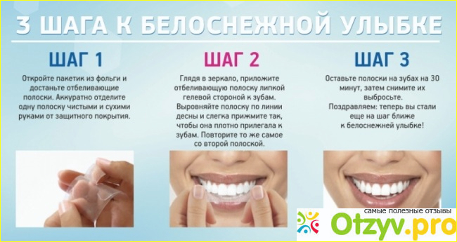 Очень важно использовать полоски по назначению, строго соблюдая инструкцию. Если превышать время воздействия, можно получить нарушения целостности эмали, воспаление десен, или неравномерное отбеливание, что создаст косметический дефект. Также важно соблюдать требуемый промежуток времени между процедурами. Это очень важно, для того, чтобы не перегружать зубы и не допустить растрескивание эмали.