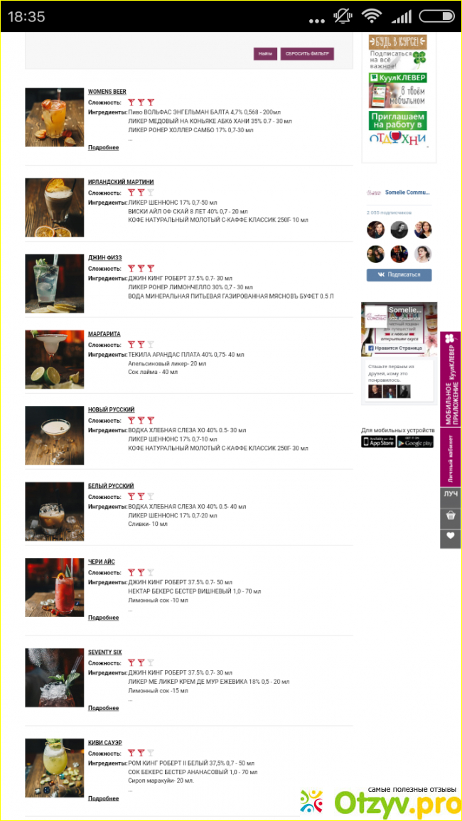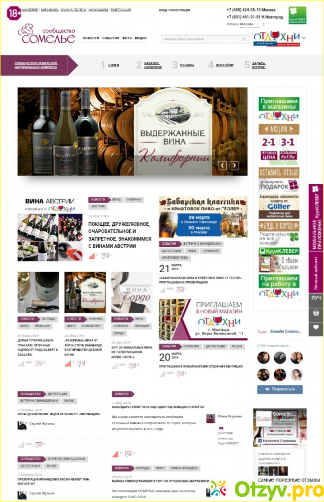 На сайте вы можете прочитать интересные новости, а также отзывы реальных покупателей о вино-водочной продукции магазина. Кроме того, здесь предлагаются рецепты разнообразных коктейлей.