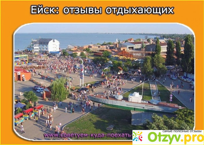 В целом, о Ейске можно сказать, что отдых на побережье Азовского моря станет незабываемым для нового туриста, отправившегося сюда за новыми впечатлениями и ощущениями.