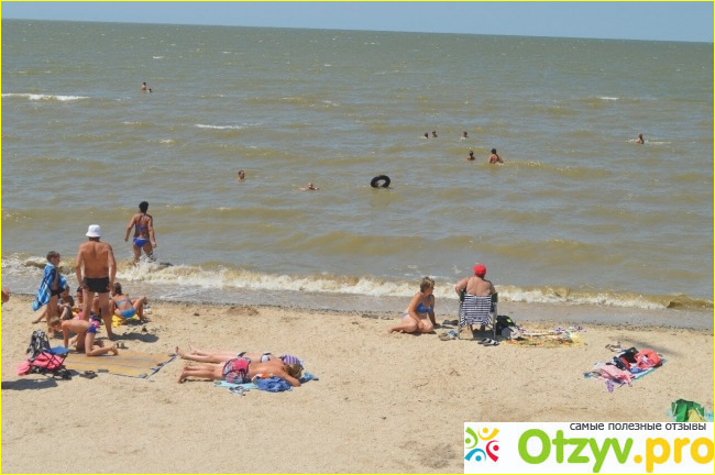На пляже есть все обычные развлечения. Бананы, детские батуты, прокат велосипедов, видсерфинг с инструктором. Море хоть и не глубокое, но ветрено почти все время. Трудно удерживаться на воде. особенно когда плохо или вообще не плаваешь. На берегу привозной песок, но чистым его назвать язык не поворачивается за счет того, что наши люди считают, что сигареты - это не мусор, и спокойно бросают их везде, впрочем как и памперсы собственных детей, всяческий сор от еды и прочее.