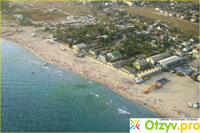 Этот курортный поселок находится в двадцати пяти километрах от города Евпатория. Однако если говорить о пляжном отдыхе, оно ничем ему не уступает, разве что менее развитой инфраструктурой и количеством достопримечательностей. Но пляжи на этом курорте ничем не хуже, зато людей меньше, да и отдых, в целом, гораздо более спокойный.