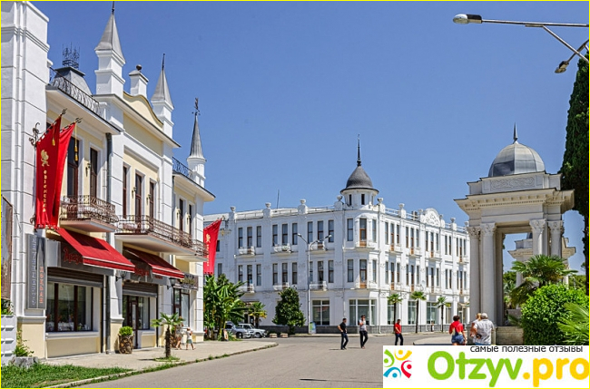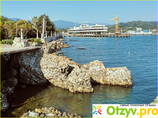 Город расположен в центре Абхазии, прямо на берегу Черного моря. Это крупный порт, железнодорожный узел и, благодаря мягкому климату, важный курорт и туристическое направление.