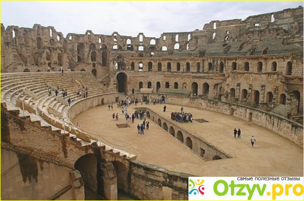 Не менее интересным для туристов будет римский амфитеатр в городе Эль-Джем. Это место своим величием вполне способно тягаться с римским колизеем. В свое время он считался третьим по величине после римского и амфитеатра в Капуе.