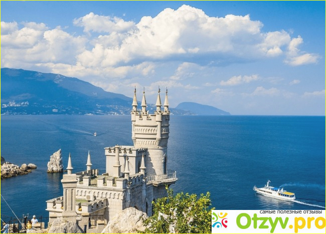 Не возможно побывать в Ялте и не познакомиться с его основной достопримечательностью - Ласточкиным гнездом. Отсюда открывается шикарная панорама на часть города, море, маяк. Все это повышает впечатления, так как конструкция крепится на скале на большой высоте. Чтобы сюда добраться необходимо совершить морскую прогулку на пароме или яхте.
