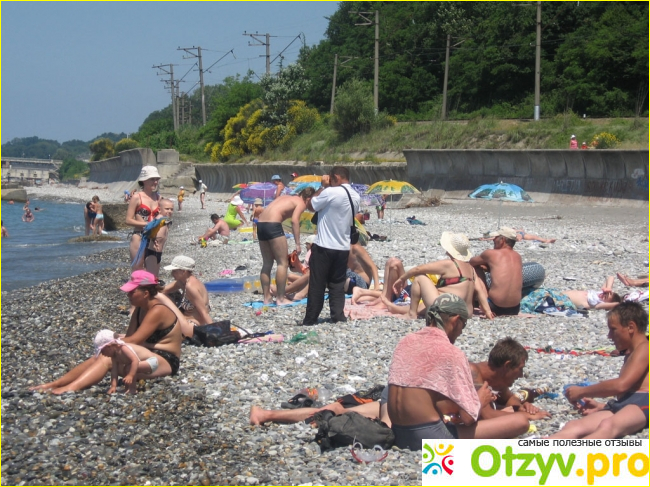 Пляжи почти не облагорожены, только небольшой участок посередине, линия берега небольшая, сразу за насыпью железнодорожные пути.