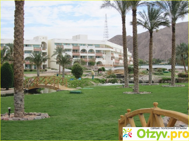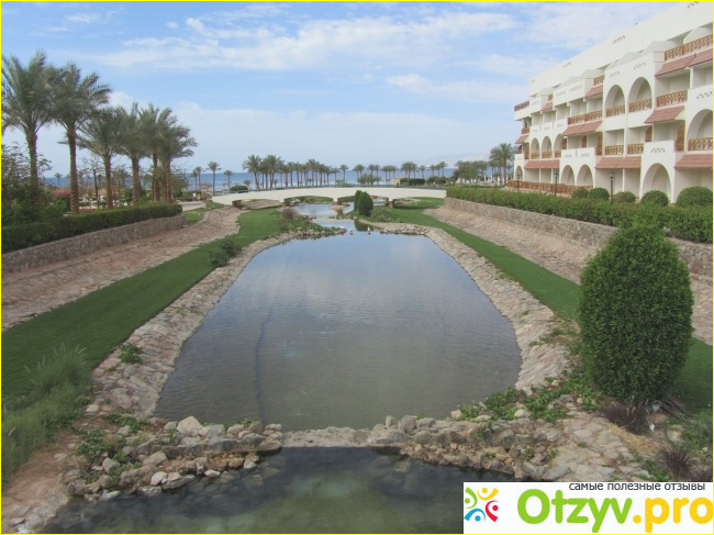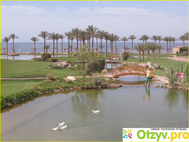 Очень удивилась, когда при бронировании отеля, менеджер туристической фирмы поинтересовался у меня не хочу ли я номер с видом на реку. Все мои знания географии резко удивились этому вопросу и я отказалась. Оказалось, что я была права - в номерах с видом на реку было много комаров. Но все же какая река может быть посреди пустынного Синайского полуострова? Оказалось в отеле сделали реку (возможно она выполняет и какую-то техническую функцию) и выглядит она очень красиво - камни, мостики, фонтанчики и уточки (которых дети любят подкармливать).