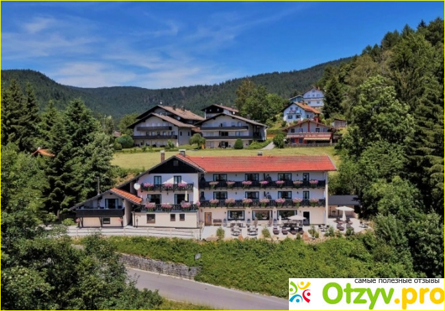 Из всех номеров и, вероятно, самой красивой панорамной террасы в Баварском лесу расположенной в этом месте, открывается прекрасный вид на Боденмайс и окружающие горы.
