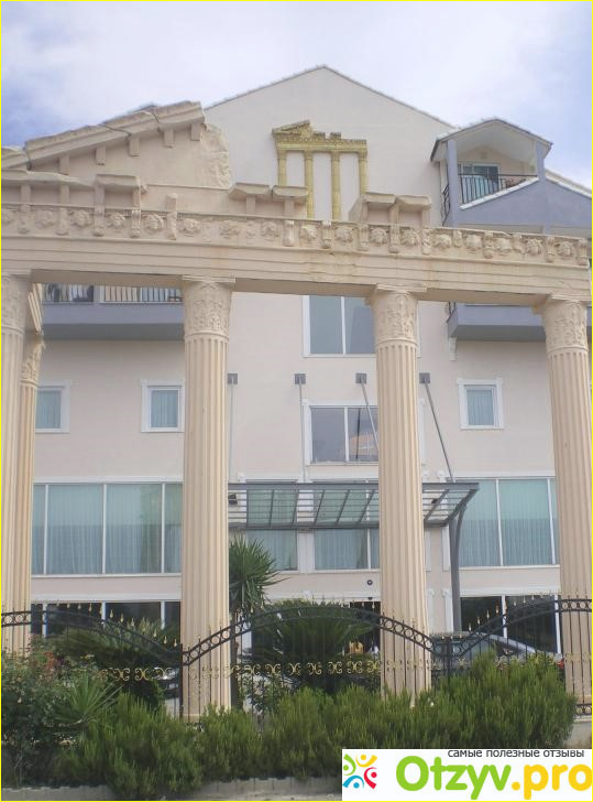 Внешний вид отеля вполне пристойный. Кирпичный четырехэтажный корпус, аккуратный, светлой расцветки, перед зданием построена имитация античной колоннады.