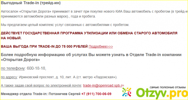 Компания также работает по направлению Трейд ин, и якобы выгода составляет до 75000 рублей, не знаю. сама не проверяла данное условие.