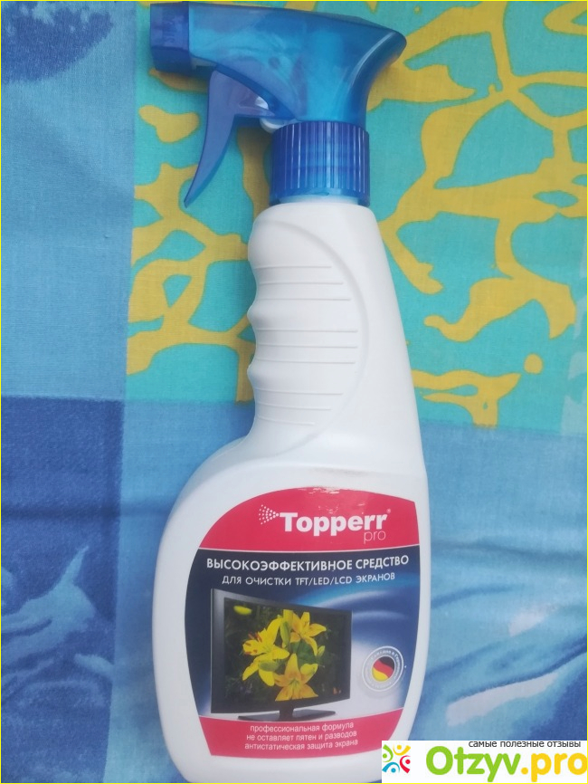 Здравствуйте, уже не первый раз я пользуюсь прекрасным средством по уходу за поверхностью экрана монитора. "Topperr" - это настоящая профессиональная формула, которая обладает антистатическим средством, не оставляет пятен и разводов на ваших экранах.