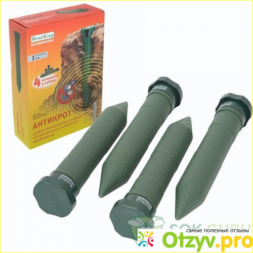 По мнению пользователей этот прибор по отпугиванию грызунов очень эффективен и действительно помогает справиться с кротами. Это не один, а пара приборов, которые необходимо поместить в землю.