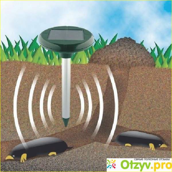 Среди ультразвуковых отпугивателей встречаются даже модели с солнечными батареями, когда его головка торчит из земли и так подпитывается, а тело находится на несколько сантиметров вглубь. В этом случае не нужно будет менять батарейки, что нужно делать с обычными ультразвуковыми устройствами. Воткнул в землю и забыл.