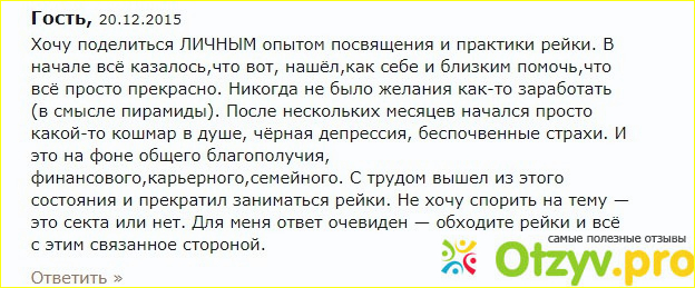 Этот человек пишет о том, что он якобы тоже занимался рейки, после чего получил "очернение в душе" и, поняв, что ничего из этого хорошего не выйдет, перестал этим заниматься.