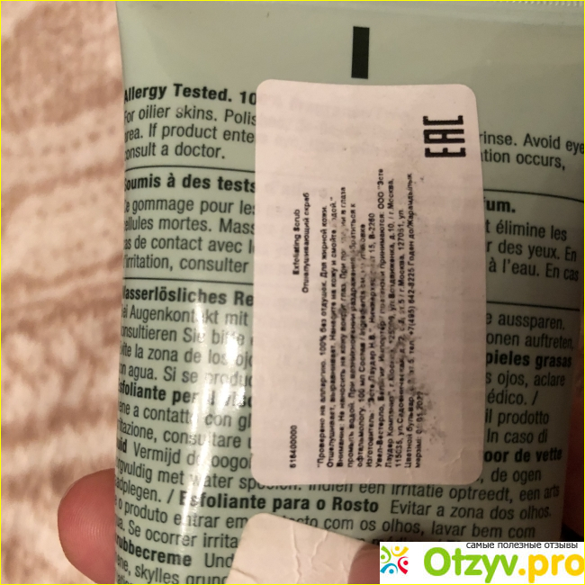 Отшелушивание, выравнивает тон. При использовании Скраб рекомендую наносить на зону «т», тем у кого комбинированная/сухая кожа. Зона «т» это межбровье, нос, зона под глазами и подбородок. Тем у кого жирная кожа, можно наносить на все лицо. Для чувствительной кожи не рекомендую вообще использовать данный скраб, так как он слишком жесткий. Скраб наносим на слегка влажное лицо и распределяем по коже массирующими действиями, через минуту /две можно смыть, т. к скраб мятный( на упаковке и этикетках об этом ничего не говорится, но уже при нанесении на кожу он очень освежает), и становится очень свежо. После скраба обязательно наносим увлажняющий крем. Я использую гель календулы от килс. Расскажу подробнее в следующим отзывом. Скраб рекомендую к использованию 2-3 раза в неделю. И уже через месяц использования вы увидите результат) так же можно использовать в зоне декольте. Скраб покупала два раза, один раз в магазине « Летуаль», а второй раз в золотом яблоке. Разницы не вижу, но наслышана о подделках в Летуаль и поэтому не доверяю ему и стараюсь не осуществлять покупки в данном магазине. В Летуаль брата за 2,500 без скидок, а золотом яблоке взяла за 1,600, на него была скидка. Кожа, конечно же, у всех индивидуальна, но я данный скраб рекомендую! Девочки, купите и попробуйте!