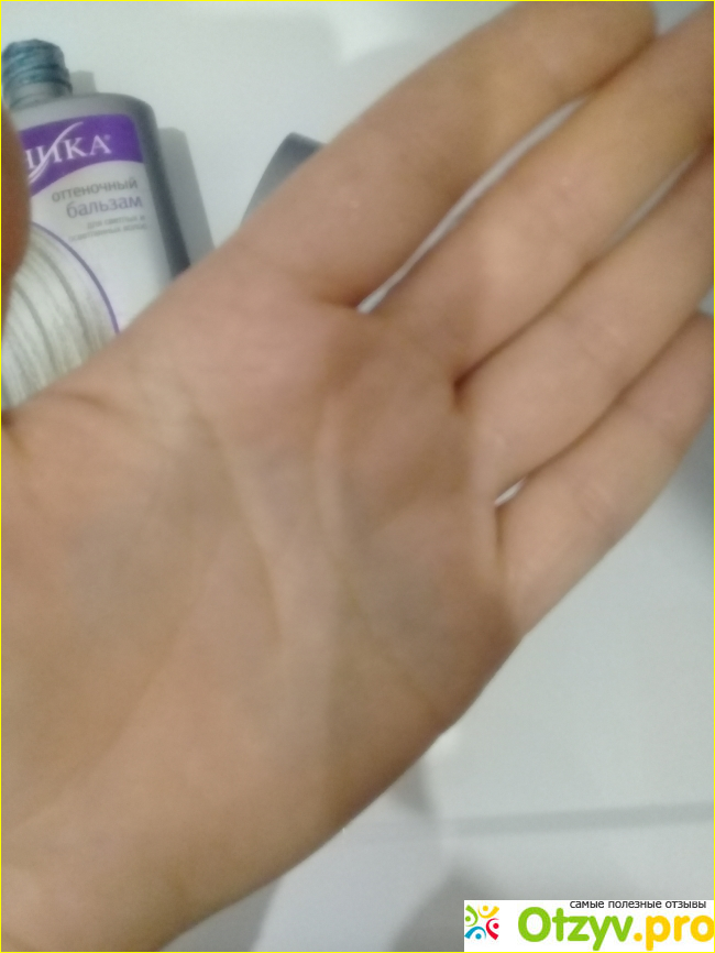 Кстати про использование, производитель говорит, что необходимо использовать перчатки. Я всегда наносила Тонику голыми руками, кожа не окрашивалась. А сегодня нанесла бальзам на руку, чтобы сфотографировать его цвет, смыла и жутко удивилась - на коже остался голубовато-фиолетовый цвет. Правда еле заметный.