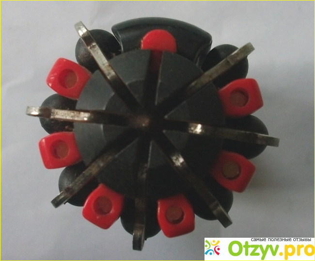 Представьте, что Вы стоите на стремянке, и кроме той шлицевой отвёртки, которая у Вас в руках, понадобилась и крестовая? Слазим со стремянки...? А вот и нет. Одним легким движением руки перещелкиваем жала. Или Вы идёте куда-то, не зная заранее, какая пригодится. Распихиваем по карманам набор? Опять не угадали. Этой одной хватит практически на все случаи. Ведь в состав входят: 3 плоских жала: (Sl, шлицевых или "минусовых") шириной 3,5, 4,5 и 6 мм. 3 крестовых: (филипс, "плюсовые") Ph0,Ph1 и Ph2. А еще два жала, "часовые", находятся в специальном корпусе. Одно из них плоское, второе крестовое. Для их использования нужно отвернуть колпачок на одном из переключаемых жал. Сами жала вывертываются вместе с резьбовой втулкой. Переворачиваем её нужной стороной и завинчиваем обратно. После использования не забываем навернуть колпачок. На фото этот узел в разобранном виде.