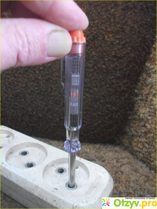 5. Домашнему электрику, как кстати, чаще всего и профессионалу, не нужно знать точное значение напряжения и тока. Достаточно лишь отличить фазный проводник от нулевого и убедиться в наличии на нём напряжения по принципу: есть - нет. С этой функцией отлично справляется индикаторная отвёртка на неоновой лампочке, удобная в использовании, не требующая источников питания, всегда готовая прийти на помощь. Не зря она обязательно есть даже у любого профессионального электрика, имеющего, кроме неё, целую кучу других измерительных приборов.