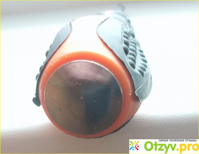 Шестигранный стержень, если попадется винт тугой, можно и ключом гаечным подсобить. Жало - черное. Это не для красоты делается. У некоторых, лучших, отвёрток оно изготовлено из более прочного металла и наварено на стержень. У других - закалено токами высокой частоты и подвергнуто воронению, оксидировано. Это не только для лучшей защиты от коррозии. Оксидированная поверхность шероховата, и не так скользит, лучше "цепляет" головку винта. На торце рукоятки - боёк. Можно молоточком тюкнуть чтоб. Если шлиц винта краской залит, или грязюка там подзасохла, да и отвёртывается легче чаще после простука, а иногда и шлиц винта слегка подправится, лучше сядет отвёртка. Вот только в электрике такие отвёртки не годятся - боёк составляет одно целое со стержнем, не изолирован, коснешься под напряжением бойка - торца отвёртки, долбанет.