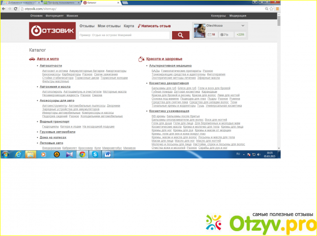 На сайте отзывов Отзовик я сижу уже давно - графоманю потихоньку, и хоть оплата мизерная, мне это нравится. Отзывы самые разные - очень много на книги, по большей части новинки, на косметику, лекарства, есть несколько развернутых отзывов о путешествиях и отелях. Всего у меня набита база более 700 отзывов.
