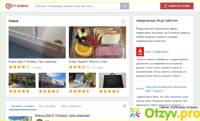 На Отзовике можно писать отзывы практически о любых товарах, услугах, а также о путешествиях.