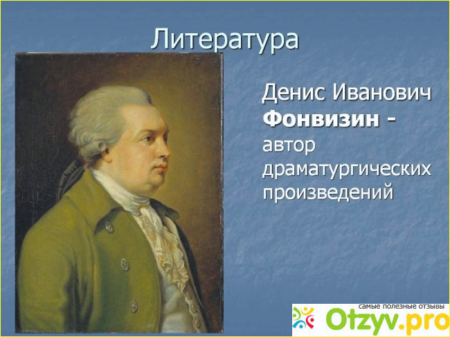 Денис Иванович Фонвизин - русский литератор екатерининской эпохи, создатель русской комедии. В своих комедиях он высмеивал пороки современного ему общества.