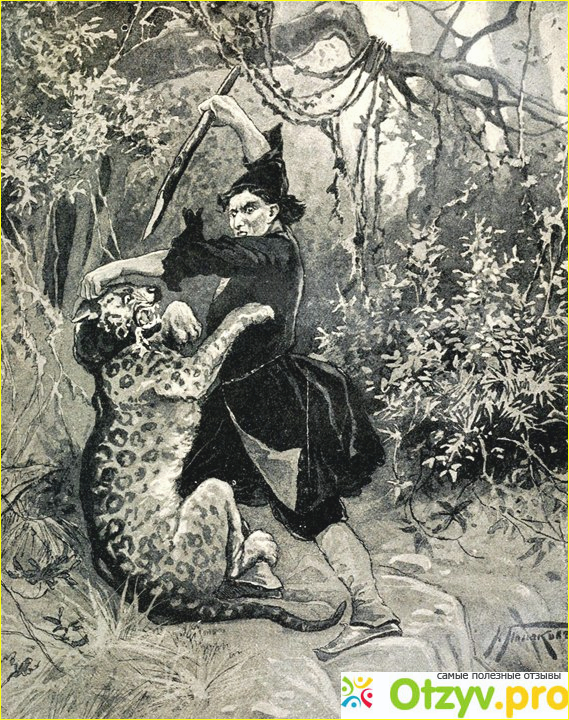 Чувствуя в сердце жажду борьбы, настоящей дикой схватки, рожденной природой, герою удается победить зверя в страшной битве. Он вонзил ему в горло сук, провернул его, однако этого было мало. Герою пришлось без оружия расправиться с барсом, дабы выйти из этой схватки победителем.
