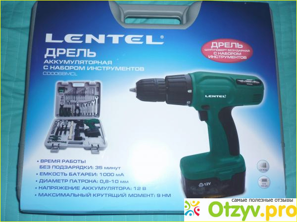 Характеристика шуруповерта Lentel CD 10. Вес составляет чемоданчика около 6,1 килограмм. Сама дрель весит около 1,400 грамм. Имеется тип патрона зажимной. Имеется также функция реверса. Это очень удобная функция, тем более присутствует не во всех бюджетных моделях. Диаметр патрона составляет от 0,8 до 10 миллиметров. Скорость работы всего лишь одна. Питание получает от аккумулятора. В работе участвует только один аккумулятор. Аккумулятор является никель-кадмиевым. Заряжается аккумулятор от трех до пяти часов. Максимальный диаметр сверления по дереву 10 миллиметров по металлу 8 миллиметров, в холостом ходу максимальное число оборотов составляет 550 в минуту.