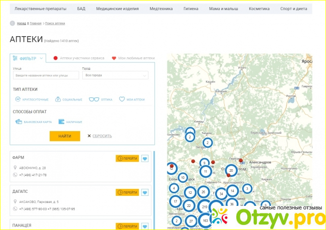 Бывают, правда, ситуации, когда надо найти какую-то определенную аптеку, но не знаешь где она находится. На этом сайте можно найти и аптеку. Когда заходишь в поиск аптек, то видишь на экране следующую картинку.
