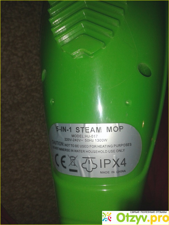 Название модели и ее номер можно увидеть на этикетке, прикрепленной к парогенератору. Тут же есть информация о том, что такие швабры изготавливают в Китае.