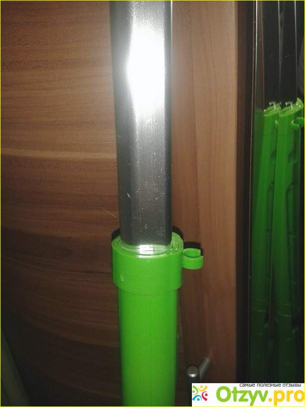 С подошвой швабры парогенератор прочно соединяется. При этом соединение остается подвижным, что очень удобно при пользовании шваброй.