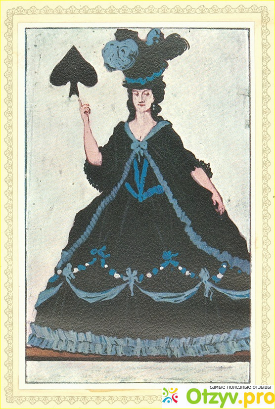 Светское общество, играя в карты заметило что Германн не ставит ставки, а лишь наблюдает за игрой. Однако, также отказалась от игры и бабушка Анна Федотовна. Шесть лет тому назад она проиграла крупную сумму денег, а так как муж ее отказался платить долг - ей пришлось отправиться к известному богачу. Тот не стал давать ей денег, но раскрыл секрет трех выигрышных карт. В тот же вечер женщине удалось отыграться. С тех пор она прекратила это занятие.
