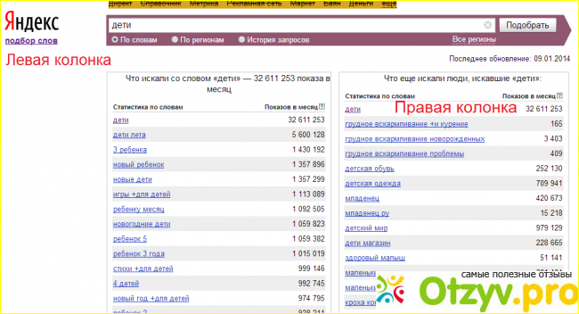 Отзыв про Сервис `Подбор слов` wordstat.yandex.ru |