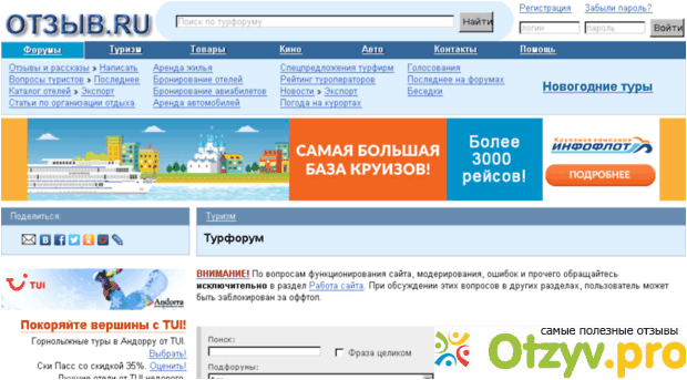 На сайте Отзыв ру можно найти множество отзывов об отелях, туристических агентствах и операторах. Это дает возможность получить объективную информацию о том, какой отель или турфирма лучше выбрать. Кроме того, на сайте есть форум, где можно общаться с другими туристами, задавать вопросы и делиться своими впечатлениями.