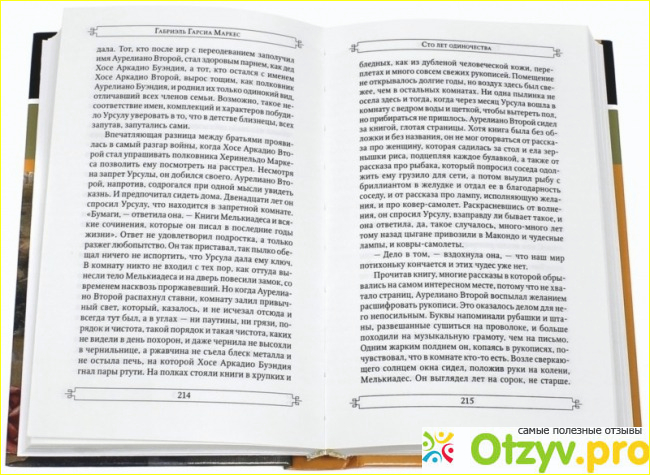 И вот, находясь в отпуске я нашла время для этой книги. начала ее читать и она меня очень затянула. Написано живым и понятным языком, так что читать ее очень интересно. Я прочла ее буквально за три дня, сначала трудновато было для понимания, но потом, примерно на середине книге, просто не оторвешься. Мне казалось, что за пыльным окном шепчет нескончаемый дождь Макондо, что вот-вот зашумит веселый караван Мелькиадеса и что если я не усну, вернувшись домой, то мне придется ходить по дому и клеить на все бумажки с надписями: «Это дверь — ее открывают». Это произведение, заставляет задуматься о многих жизненно важных вещах и затронуло некоторые струны моей души.