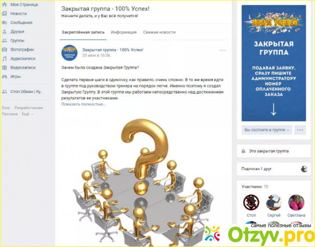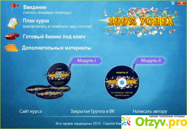 Однако, не смотря на все эти стремления и благие намерения любую, важную информацию, которая предоставляется потребителю, необходимо растолковать экспертами, которые имеют представления о той или иной информации. В интернете безусловно можно найти множество информации по поводу курсов под названием 100 % успеха, и его авторе Сергее Камардине. Не вся конечно является достоверной, но некоторой можно верить, допустим один известный сайт, который занимается разоблачением мошенников, довольно лестно отзывается об этих видео курсах, потому я прочитав информацию о них, решила испробовать на себе и приобрела их.