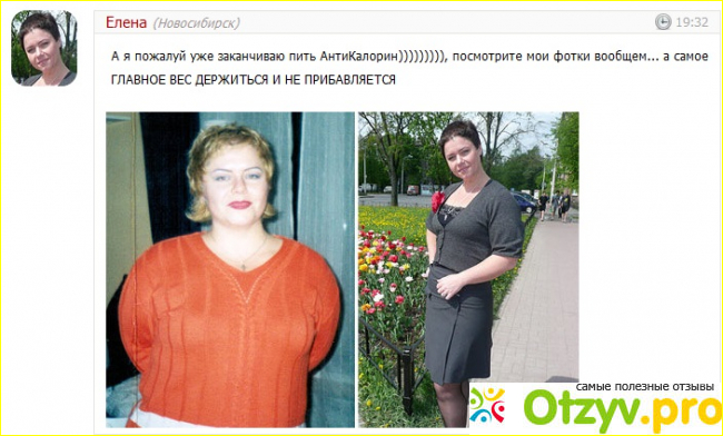 По правде говоря, я по своей натуре человек ленивый и все попытки похудеть у меня заключались в покупке каких-либо "помогалок", обещающих стремительное похудение: таблеток, поясов, бриджей из плотной ткани, пищевых добавок и т. д., а не в интенсивных занятиях спортом и эффективных диетах. И вот однажды во время очередного такого "приступа похудения" я наткнулась в интернете на интересную статью про препарат Антикалорин. Данная статья гласила, что Антикалорин - это новейший препарат, разработанный европейскими учеными, который нормализует и ускоряет метаболизм, влияет на механизм возникновения голода (уменьшает его), сжигает жир и способствует строительству мышечной ткани. Среди главных преимуществ Антикалорина перед другими препаратами для похудения было указано: 1. натуральный и безопасный состав; 2. потеря веса в кратчайший период без каких-либо усилий и физической активности; 3. косметический эффект: при резком похудении подтягивает кожу и избавляет от растяжек; 4. простота применения; 5. длительное поддержание полученного результата; 6. возможность не менять свой рацион питания, так как препарат не позволяет усваиваться лишним калориям. Звучало все, конечно, как сказка, но еще более радовал натуральный состав: вытяжка шиповника, ламинария, экстракт полевого хвоща, березовые листья, цветы бессмертника, экстракт мяты, листья кассии. Действительно, ничего вредного и подозрительного. А еще больше меня порадовала цена, она было абсолютно доступной и приемлемой - всего 990 рублей. Я непременно решила прочитать отзывы об этом-чудо препарате, и многие из них оказались довольно положительными, очень порадовали так же, размещенные в сети фотографии "до и после".