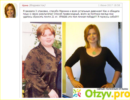 Спустя месяц применения этих волшебных таблеток я потеряла 6 кг. Вся прелесть моего похудения заключалась в том, что я абсолютно не делала никаких физических упражнений и, в принципе, не отказывала себе в еде. За месяц приема Антикалорина я стала действительно меньше хотеть есть и съедать гораздо меньшие порции. У меня намного улучшилась работа кишечника и я стала регулярно ходить в туалет и избавилась от запоров. Кожа на теле стала упругая, эластичная, не было никаких растяжек и заметно уменьшился целлюлит. Жир с тела ушел равномерно, моя фигура стала более правильной и пропорциональной. В инструкции было сказано, что после окончания курса, который составляет 30 дней, смело можно было повторить еще один, если полученного результата оказалось мало, но я решила остановиться, так как, в принципе, была удовлетворена. Уже прошло 2 месяца с момента окончания приема мною Антикалорина и я хочу сказать, что потерянные киллограмы и сантиметры так и не вернулись, то есть мой вес стоит на месте. Наверняка, причиной этому является уже ускоренный препаратом метаболизм и то, что препарат отрегулировал необходимое мне количество пищи - заметно уменьшил. Теперь у меня практически не возникает острое чувству голода и я наедаюсь очень маленькими порциями. Спасибо Антикалорину!