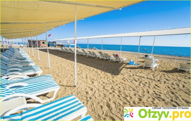 Пляж собственный, очень близко по расположению, песчаный. В распоряжении отдыхающих шезлонги, матрасы и зонты.