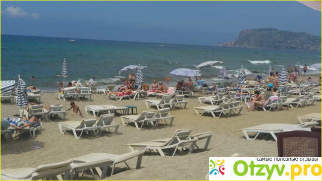 Когда мы планировали данное путешествие, то как-то и не предполагали что остановимся именно здесь. Этот отель нам порекомендовала наша туристическая фирма. От центра Алании примерно идти минут 35. Ведь денежных средств при планировании нашeго отдыха было не очень много, то выбрали сравнительно недорогой отель, но все же предпочли чтобы он располагался на первой линии. Для мужа было важно хорошее питание, а также песчаный пляж. Наш корпус имел 7 этажей. Все номера жилого фонда размещены на втором этаже, первый этаж отводится под ресепшен. Спустись ниже от ресепшна попадаешь в спа салон. Территория отеля большим объемом не отличается. На первом этаже имеется бассейн, ресторан, небольшой магазин, где можно купить кожаные изделия. Кстати, здесь можно провести небольшой торг, и купить значительно дешевле. Так муж купил себе куртку, причём хорошего качества и обошлась она ему примерно в 160 долларов. Непосредственно возле бассейна находится бар, очень понравился сам бармен, который был очень приветливым. Интересно, что тот чай который готовил он был невероятно вкусным, а вот тот который приготавливал его преемник, совсем не понравился.