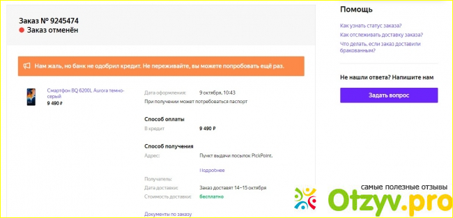 Самое забавное, что банк кредит мне одобрил, о чему уведомил в СМС, после того, как я совершила покупку, а на сайте снова зловещая надпись.