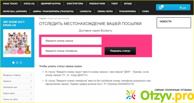 После оформления заказа на сайте, менеджер связывается в тот же день, уточняет все детали. На следующий день заказ отправляют, а в СМС присылают его номер. На сайте, кстати, удобно можно отследить посылку по номеру заказа или по вашему номеру мобильного телефона.