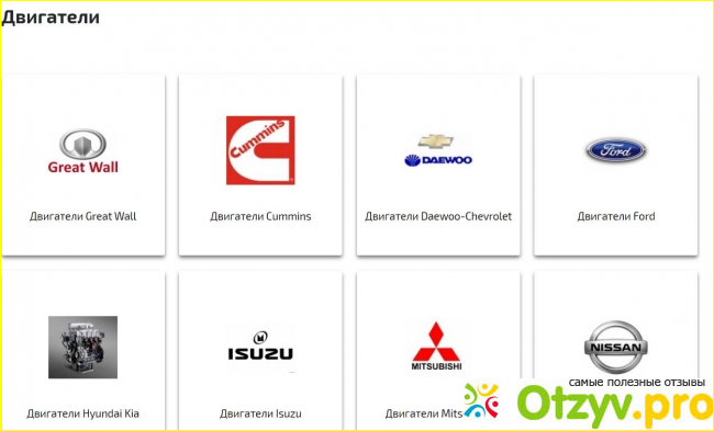 Выбор продукции здесь действительно большой, практически можно приобрести любые двигателя, предварительно посмотрев на сайте их цену и наличие в том или ином регионе. Также дана вся необходимая информация про двигатель и представлены его фотографии с разных сторон. Так что приобретать здесь не только выгодно, но и очень удобно. Двигатели представлены от таких компаний, как Great Wall, Cummins, Daewoo-Chevrolet, Ford, Hyundai Kia, Isuzu, Mitsubishi, Nissan, Ssang Yong, Toyota, Volkswagen, Audi, Skoda, Seat. Как видно спектр продукции в этом плане очень крупный и обширный. Можно приобрести двигатели не только корейских компаний, но и всех остальных.