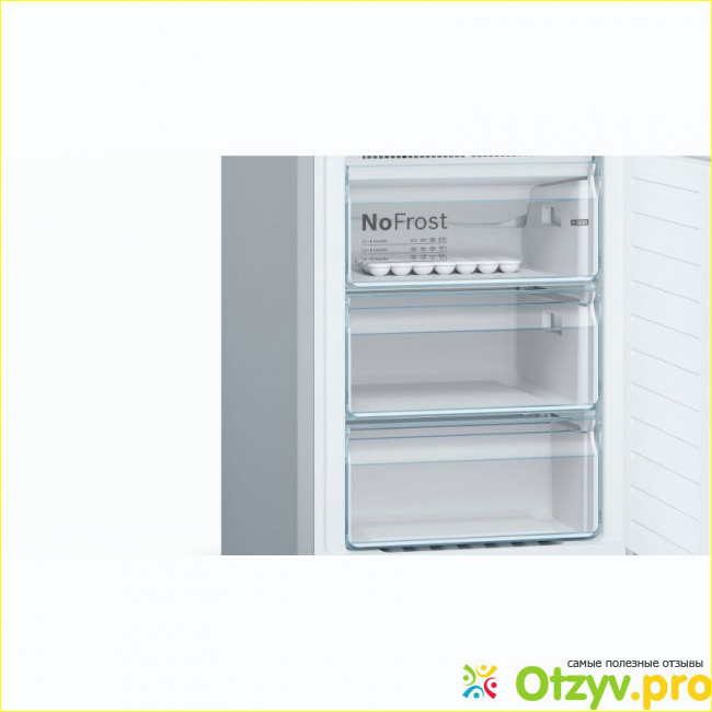 Компания Bosch оснастила морозильник двумя ящиками полной ширины, которые имеют в общей сложности три пластиковых контейнера. В то время как организационные возможности отсутствуют, большое количество места для хранения является хорошим.
