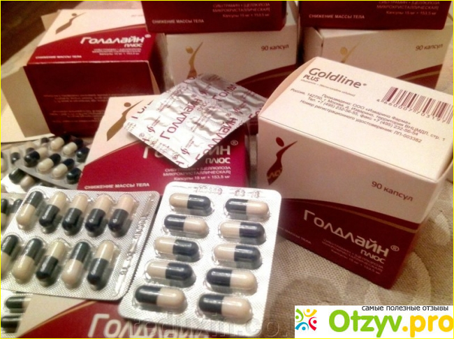 2) Голдлайн Плюс - тут в составе помимо активного компонента содержится также микрокристаллическая целлюлоза. Вполне оптимальный вариант для терапии ожирения и сброса лишнего веса;
