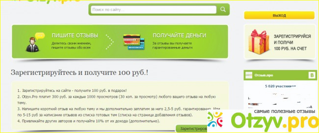 За регистрацию вам в качестве бонуса на счет ложат 100 рублей, минимальная сумма к выводу составляет 500 рублей. Достичь этот порог весьма легко, нужно лишь конечно постараться и если писать отзыв в 3000 символов с тремя заголовками и тремя картинками, получаете 30 рублей, если тема из списка высокооплачиваемых. Напишет 20 - получите 600 рублей.